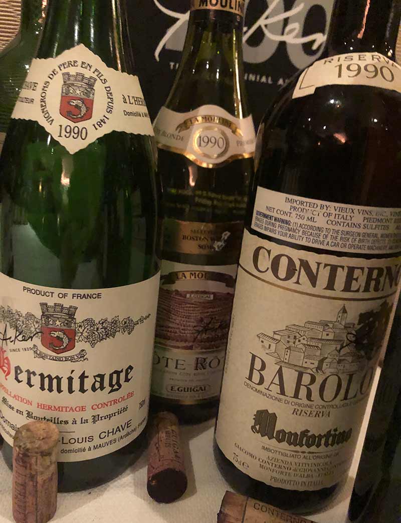 The 1990 E. Guigal Cote Rotie La Mouline was darker, deeper, chunkier and blacker. Vinivici found its ‘acidity ringing,’ and it was definitely rich, decadent and heavier than the previous glass, but not as stylish (96).