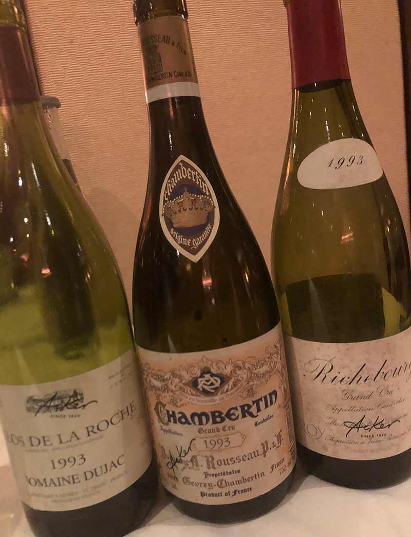 It couldn’t be a Rare Legends dinner without a La Tache flight, and most appropriately we began with a 1990 DRC La Tache. This was another rock star wine with great depth and freshness. This was fresh like the Versailles garden. It was rich, leathery and black with a touch of partridge with the buckshot still in it. It was so long and stylish, continuing to unfurl until there was regrettably nothing left in my glass (98).